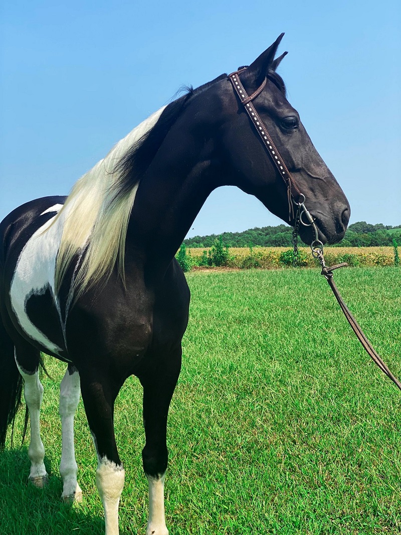Bandera is a Spotted Saddle Horse Gelding. Standing at 15’2hh and built like a tank, he is suitable for any sized rider. If you’re looking for a nice gelding that is easy enough for the babies to ride, or take out and enjoy yourself, Bandera is your guy. There are not many horses I would ever consider “Kid Broke” but Bandera is the closest thing I have ever had to a true unicorn. He has all the heart in the world, or will sit and walk on a loose rein all day until asked to pick up. Bandera has a nice slow gait, or can pick up and travel down the road smoothly around 15mph. Don’t let that scare you, because he will settle right down and walk all day if that is what he is asked. He will stand for mounting, to be tacked, bathed or shod. We have shot guns, and exposed Bandera to all kinds of crazy stuff. There isn’t much that bothers this guy. Bandera has crossed any creek, log and ditch we have put in front of him, without any hesitation. He does not mind standing on a picket line for overnight camping trips, or will stand tied to the trailer next to other horses like a gentleman. This guy rides perfectly in big groups as large as 30 or out alone; front, middle or in the back he is aimed to please his rider. We have ridden Bandera around large farm equipment, ATV”s, dirtbikes, side-by-sides, tarps, leaf blowers and chainsaws and he was not phased. Bandera is suitable for any level rider, and is truly a once in a lifetime horse.