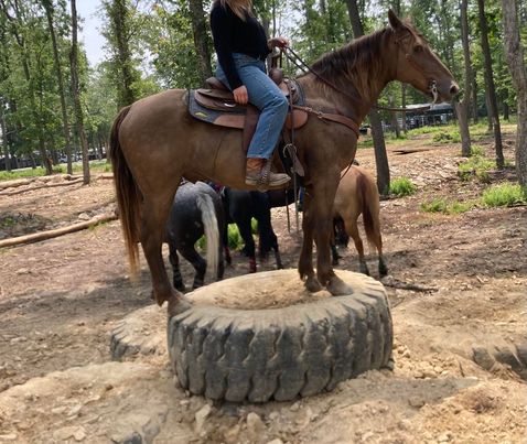 Let me introduce you to Banjo, the brokest, safest & most unique Rocky Mountain we have had to offer! This is Banjo. He stands 15.1 and will weigh 1100lbs. He is beautiful in his dark chocolate color with a golden streak mane and tail! Banjo is truly special in his own way. Not only does he have the color and conformation everyone is looking for, but he also has the kindest disposition to make someone a forever dream horse! Banjo has spent numerous hours on trails, field trials & fun shows. You can ride Banjo with a bridle or bridle-less, loose rein or tight rein; it doesn’t matter. He has been ridden by beginners & trained by professionals. Being trained by professionals, he will neck rein one handed, canter on correct leads and back on command. Responds to leg cues. Stands to be mounted and dismounted on the ground or a mounting block. Does Banjo do tricks? Oh yes he does! Banjo will count, march & bow on command. While being on numerous and countless hours on the trails. Banjo has seen it all and done it all. He will cross logs, water and ditches quietly and safely. He will travel up and down hills at a safe pace and comfort for the rider. He is traffic safe as well! He has been used to pony other horses around the camps at trail rides & used to give the beginners lessons! While all this is important to all equine enthusiasts, I think the most important is that he is SAFE! Banjo is an all around family horse. From kids to any aged adult, Banjo takes care of his rider. He can be trusted to ride with a group, or ride out alone with no issues. Banjo stands to be saddled, bridled and groomed! Picks up all of his feet with ease and stands for the farrier. With this being said, Banjo is truly one of a kind. He is seasoned and pure in all aspects. If you’re looking for your next dream trail mount or confidence builder, look no further.