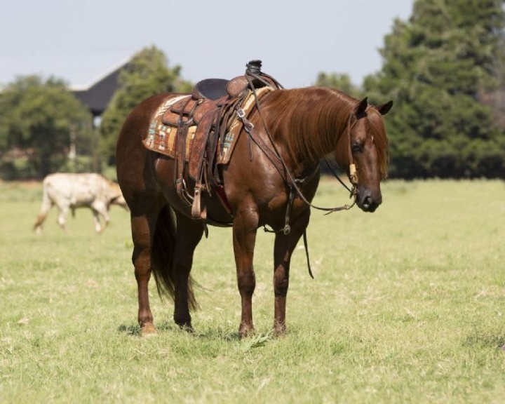 Here is the complete package. Absolutely gorgeous, built like one should be, athletic, talented, and the breeding doesn’t come any better. Anything you want to do horseback you can do on Champion. He cuts, reins, ropes and has been used all over our ranch. He’s extremely cowy with a lot of style, a deep stop and cow-sense. He runs a super easy reining pattern with effortless lead changes, will run and stop every time, and has fast spins. Champion is great to rope on. Perfect in box, leaves flat, can really run with great rate and timing. He would finish out to be a top break away or calf horse. He works the rope, is strong from the horn, and can make the ground squawk when he stops. Champion is always gentle and there is no silly business to him. He’s honest, kind and is very easy going and adaptive. You will love his funny disposition and big personality. Champion will be fun for any level of competitor to go show in the Cowhorse, cutting, and Versatility shows or will be your go to ranch horse.