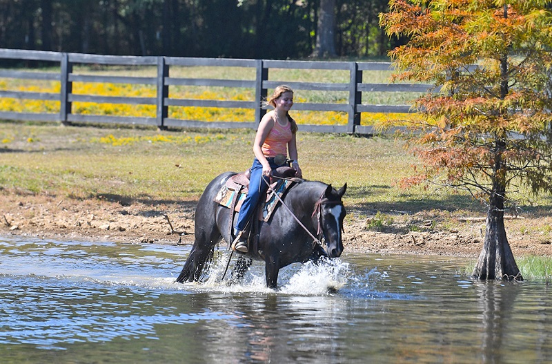 Right here is what dreams are made of! Crank is jet black and a pure beauty! He is a stout built horse with lots of muscle, a good bone structure and an even better mind. He is quiet and gentle and safe for anyone to ride, just climb on and Crank will do the work. If you want to mosey along down the trail, Crank is plenty content as he is never in a hurry. He will cross creeks, ditches, logs, deadfall, scale rocky terrain and is very sure footed. If you want to go out and ride fences and cover country he can move on out and get the job done. If you’ve got a sick yearling that needs doctored just get your loop ready and he will put you in position to rope it. He will also hold it while you’re doctoring it. He neck reins great, has a good stop, sidepasses and backs with ease. Crank is a horse that the whole family will enjoy and a horse that you can go do a job on.