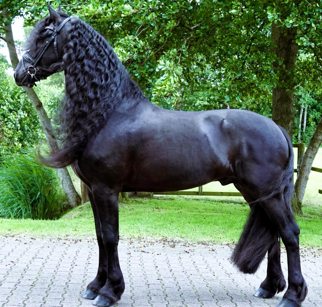 Black Sterling Friesians is excited to present this amazing super sweet and stunning. Iverson is 16.2 hands and really a perfect boy for most riders of numerous levels, as he is completely uncomplicated, and safe, no matter where you take him. Iverson is 16.2 hands and really a perfect boy for most riders of numerous levels, as he is completely uncomplicated, and safe, no matter where you take him. He never had even one day of illness. At age 3, when his joints were closed, Iverson was started under saddle. It was like he was born with a saddle on his back: being ridden is second nature to him! His character is very cool, calm and steady. For the last 3 years he has been trained to his current level, so from the basics to Z1, achieving the highly coveted SPORT predicate, all with patience, utilizing respect, confidence and her love for horses. Iverson therefore has a lot of faith in human beings. As this family is blessed with children and grandchildren who love the horses as well, Iverson is VERY accustomed to being around people of all sizes and ages. His character is even more beautiful. Iverson is a very sweet and gentle horse. He is kind to whoever is with him and loves to be cuddled and groomed, even by the smallest children. His patience is limitless. We believe Iverson is a fantastic sporthorse, and his record would indicate the same, and because of his character he is also perfect for a less experienced rider as a schoolmaster or as a family horse. Iverson is safe in traffic, & loves to go on a trail ride as well. He is in good health, no vices. Easy to load in a trailer all by yourself!