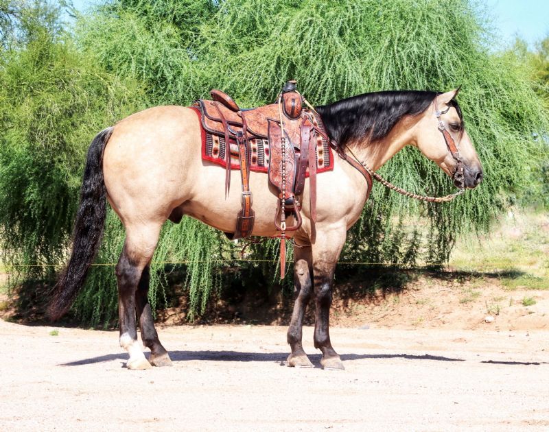 Here is possibly the most astonishing gelding we have offered through our program. Phantom is the American dream! He absolutely has the kindest disposition and a heart of gold. He is 100% bombproof gentle and tolerant for anyone. If you want an insurance policy, here you go. He has stylish circles, fast spins, long sliding stops, and effortless lead changes. He would make a world champion style ranch rider and ranch versatility horse. He demands attention in the show pen with his bold presence. Phantom is a push-style type of horse and likes to go slow, but has all the speed you would want if needed. He is amazing outside and enjoys to leisurely cruise down the trails. He is perfect alone or good with a group. He stands ground tied, will side pass to open all the gates, and his very sure footed. Phantom has seen a little bit of everything. Nothing bothers this confident gelding. He’s accustomed to crazy dogs, enormous Longhorns, pushy pigs, buffalo, and even a camel. He has been in all types of terrain and goes right where you point him. Phantom loves attention and will run to the gate when he sees you. He’s very easy to handle in all situations. There is nothing tricky to him. He’s as pure and honest as you will find. He’s been receptive and easy going about everything we have exposed him to. Standing 15.1 hands, we absolutely love this big guy and are excited to offer him. He’s truly a once in a lifetime kind of horse and partner.