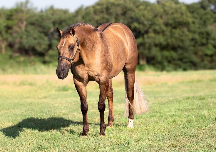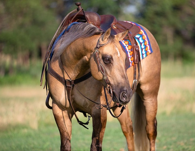 It’s hard not to fall in love with this big-hearted, flashy gelding. Right away, Zidane’s huge dog-like personality won us over. He truly loves everyone… and I mean everyone. It doesn’t matter what time of day, or if he’s in a dead sleep, once he hears you coming he lets out a big nicker to greet you. It didn’t take long for him to show us his ‘silly’ side and he has been making us laugh ever since. He sticks his tongue out on command when you push on his nose! This sweet guy can convince just about anyone to stop and pet him. He actually knows his name and will respond to you! If he doesn’t flag you down with his nickers, his looks sure will. Zidane is a Palomino on his papers, but as he has gotten older he darkened into a gorgeous Dunalino. He has a dark dorsal stripe, tiger stripes on his legs and withers, and a bright mane and tail to top it off!